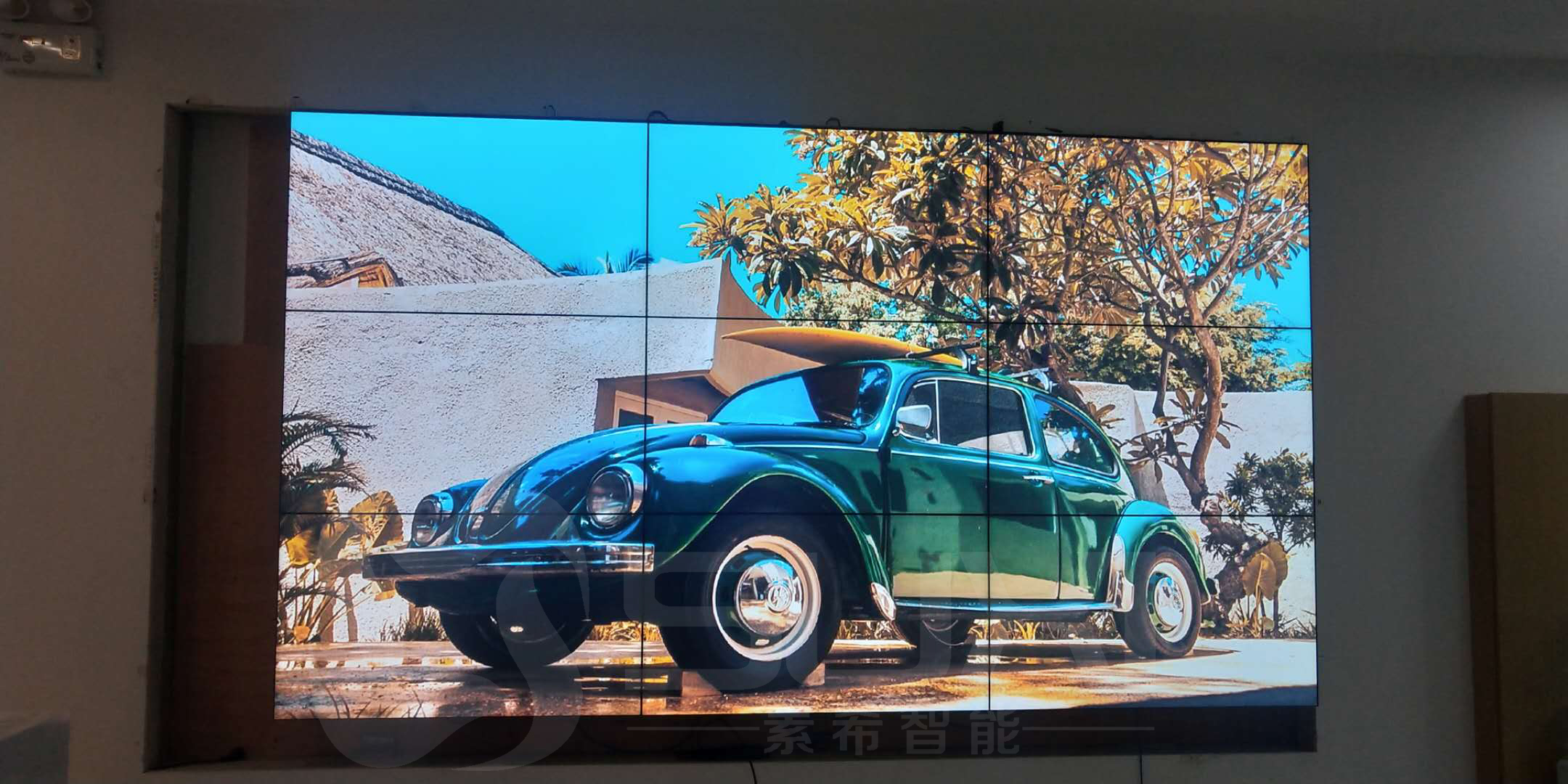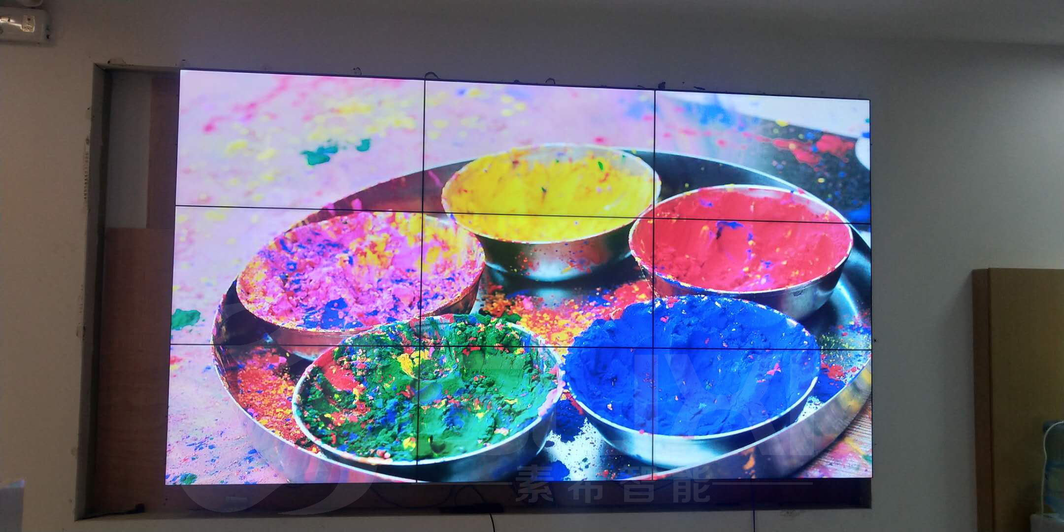 目前最常見的產(chǎn)品主要是電視機(jī),液晶拼接屏和LED顯示屏等,針對該公司企業(yè)展廳的面積和應(yīng)用需求,以及客戶的預(yù)算,我們最終安裝了3*3 3.5mm超窄邊液晶拼接屏。